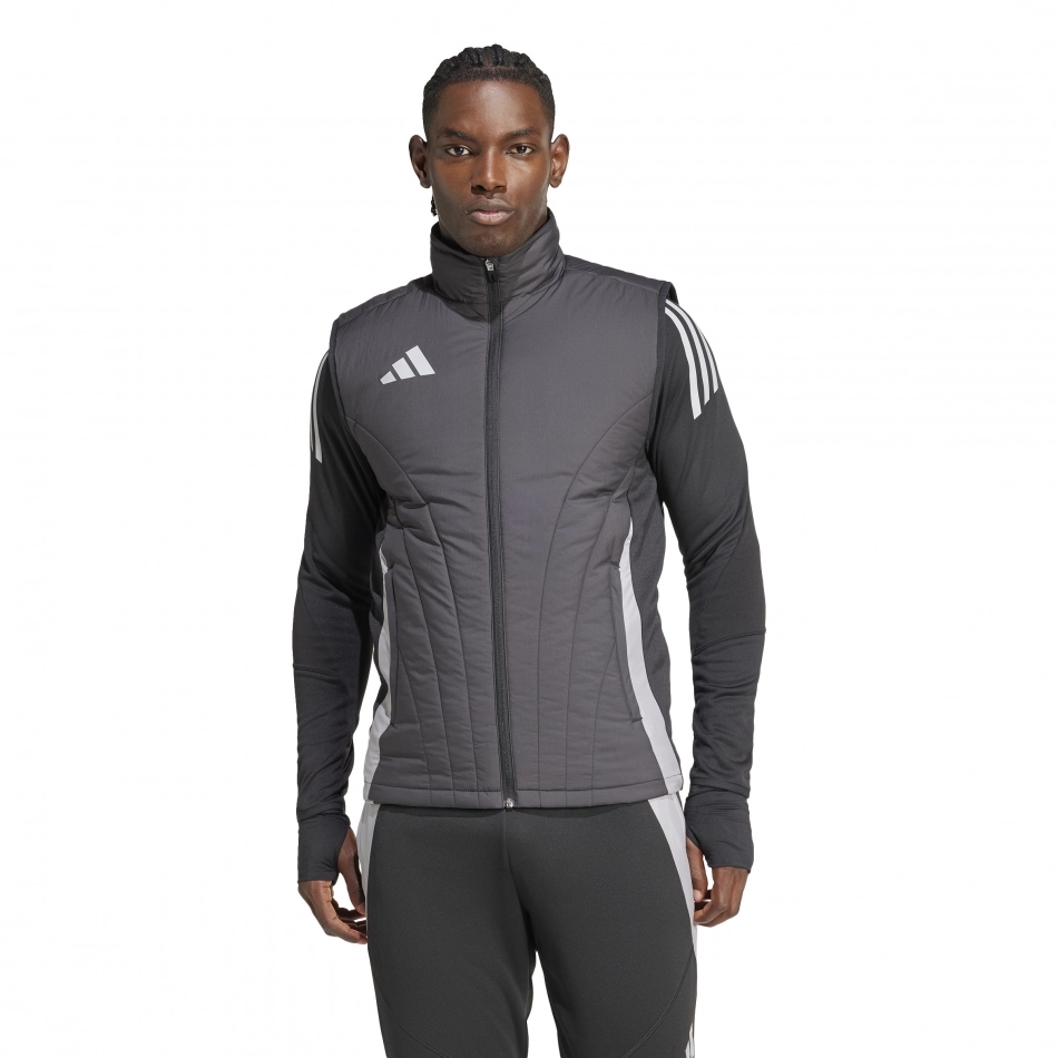 A menő futballedzésekre a Tiro24 Competition Winterized Vest tökéletes megoldást kínál. Ez a karcsú szabású mellény, 100%-ban újrahasznosított PET anyagokból kötött, meleget biztosít ott, ahol a legnagyobb szükség van rá, extra rétegek nagy része nélkül. Gyors és vizuálisan meleg, ezüst fényvisszaverő logóval és három csíkkal a láthatóság javítása érdekében, ez a mellény innovatív előnyt biztosít a nagy teljesítményű hideg edzéshez.