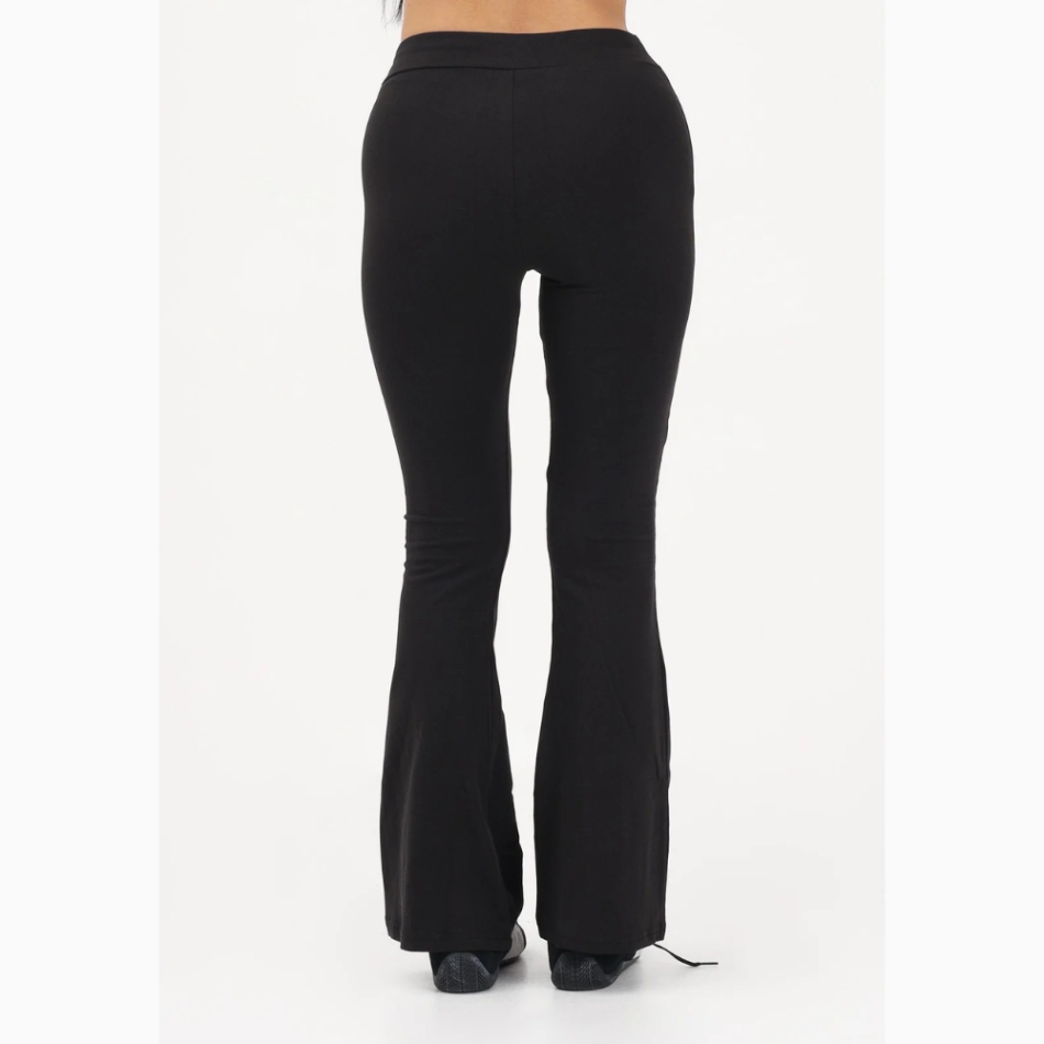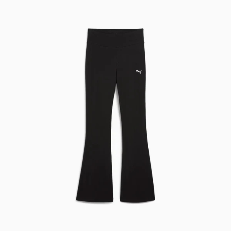 PUMA ESS női fekete sportleggings, amelyet a kényelem és a stílus érdekében terveztek edzéshez vagy szabadidőhöz. A magas derekú, dupla rétegű derékpánttal ellátott kialakítás tartást és áramvonalas sziluettet biztosít. A testhezálló szabás alul enyhén nyílik, bővülő szabással, amely ideális az alak karcsúsításához és a 90-es évekbeli hangulat eléréséhez sportos megjelenéshez. A fehér Puma logó a bal combon található, visszafogott, mégis felismerhető megjelenést kölcsönözve. Sokoldalú darab, amely tökéletesen kombinálható rövidített felsőkkel vagy túlméretezett pulóverekkel.